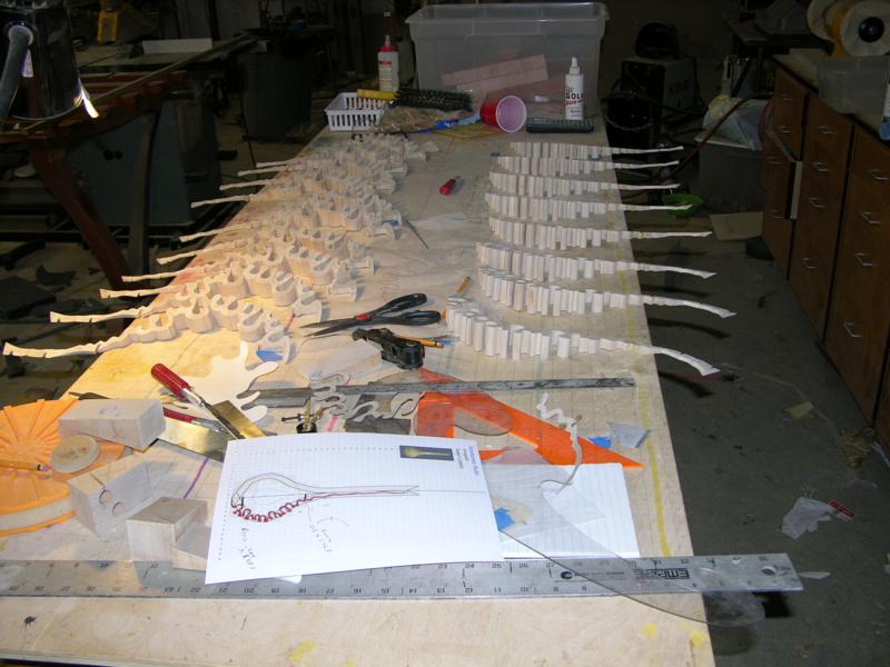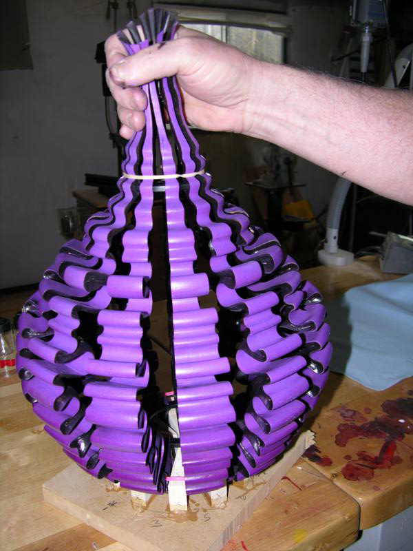 Assembly on the internal rings took time and temporary jigs. We made 18 strips and only used 13. This enabled a better look at the wavy line the strips made.
