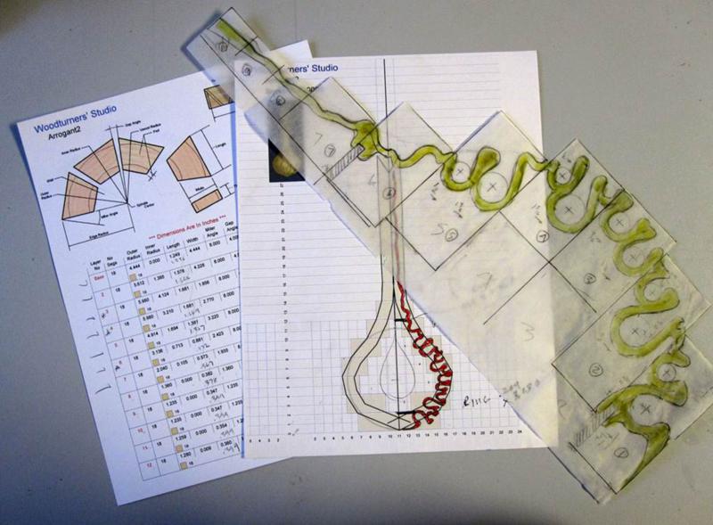 You must have a plan. I took the output from Woodturner Studio and drew a full sized plan. The vessel was to have a ribbon like effect and laying it out exact was the only way.