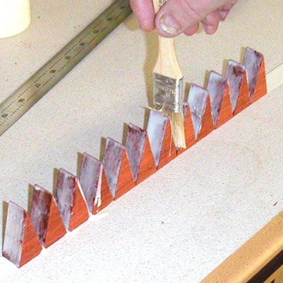 Apply glue up to the glue line with a small brush. I use regular Titebond glue which sets rather quickly. A slower setting glue will slow down the process.