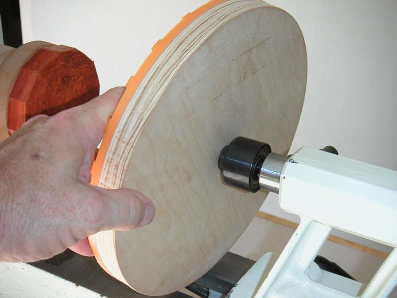 I like using a faceplate rather than a chuck because you can remove the vessel from the lathe and put it back on and not have to worry about alignment.